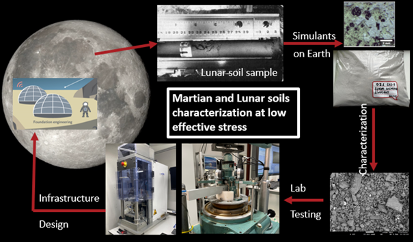 NGI is working on various research projects funded by the Norwegian Space Agency (Norsk Romsenter) on regolith simulant characterization. The extraction of regolith resources and their conversion to useful products depend on engineering processes (excavation, trafficability, etc.) and are governed by regolith physical properties.