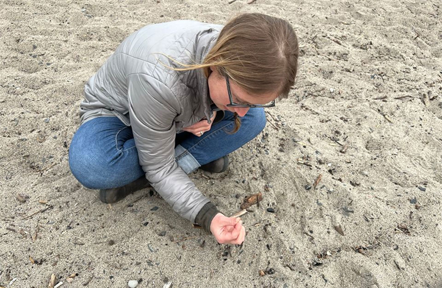 “I’ve spent many winter hours here in the sand at Huk collecting pieces of plastic, or 'nurdles' as we say in English,” Ellenwood says.