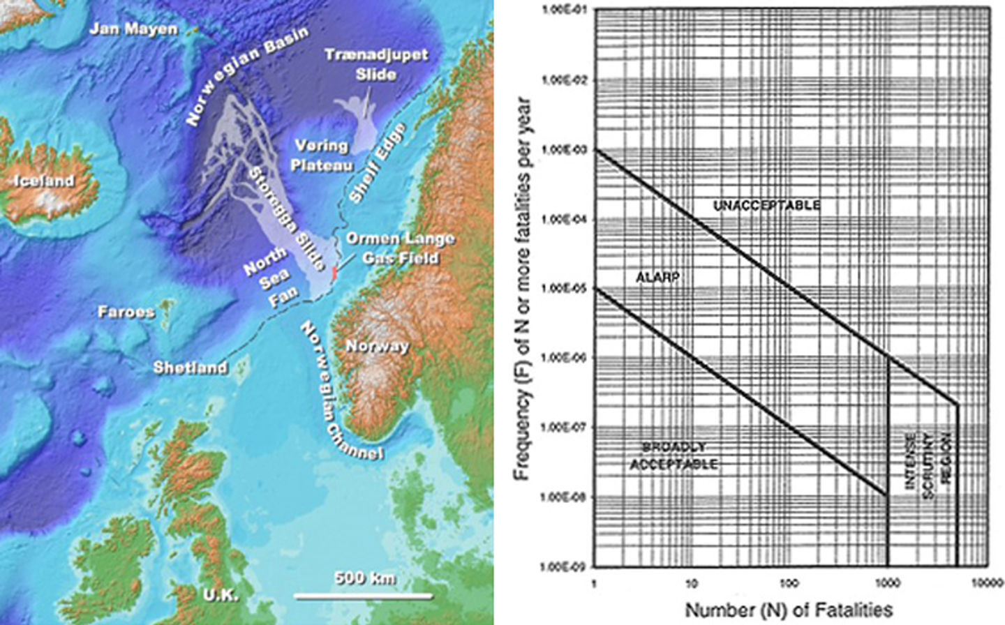 Figure 5 (left): Localisation of the Ormen Lange Gas Field, and Figure 6 (right): Risk acceptability