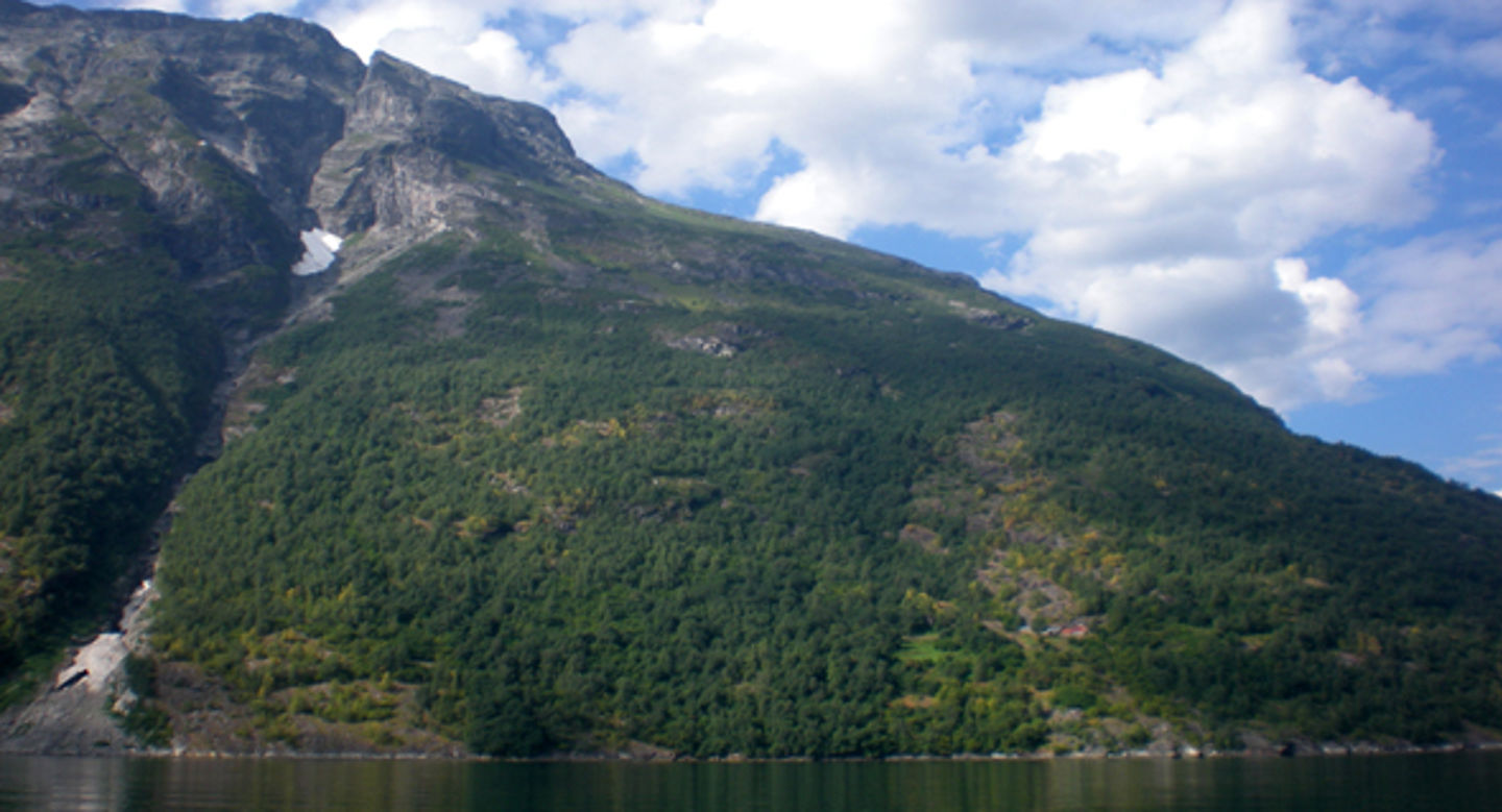 Åknes is a rock slope over a fjord arm on the west coast of Norway. The area is characterized by frequent rock slides between 0.5 and 5 million m3 volumes. Massive slides have occurred in the region, e.g., the Loen and Tafjord disasters. Bathymetric surveys of the fjord bottom deposits show that numerous gigantic rockslides occurred thousands of years ago.