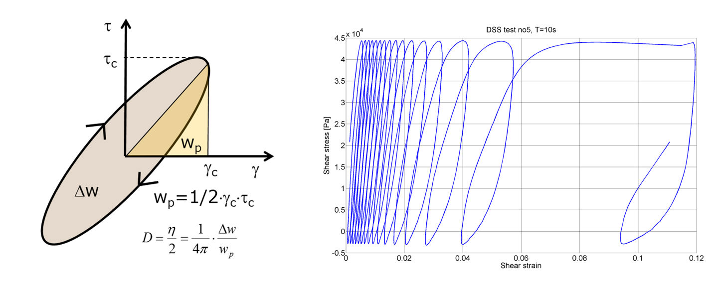 The periodic forces from wind, surface waves and swells acting on offshore installations, such as OWTs, lead to cyclic motion of the foundation soils. The damping characteristics of the soil results in energy dissipation, which in turn alters the cyclic response of the structure.