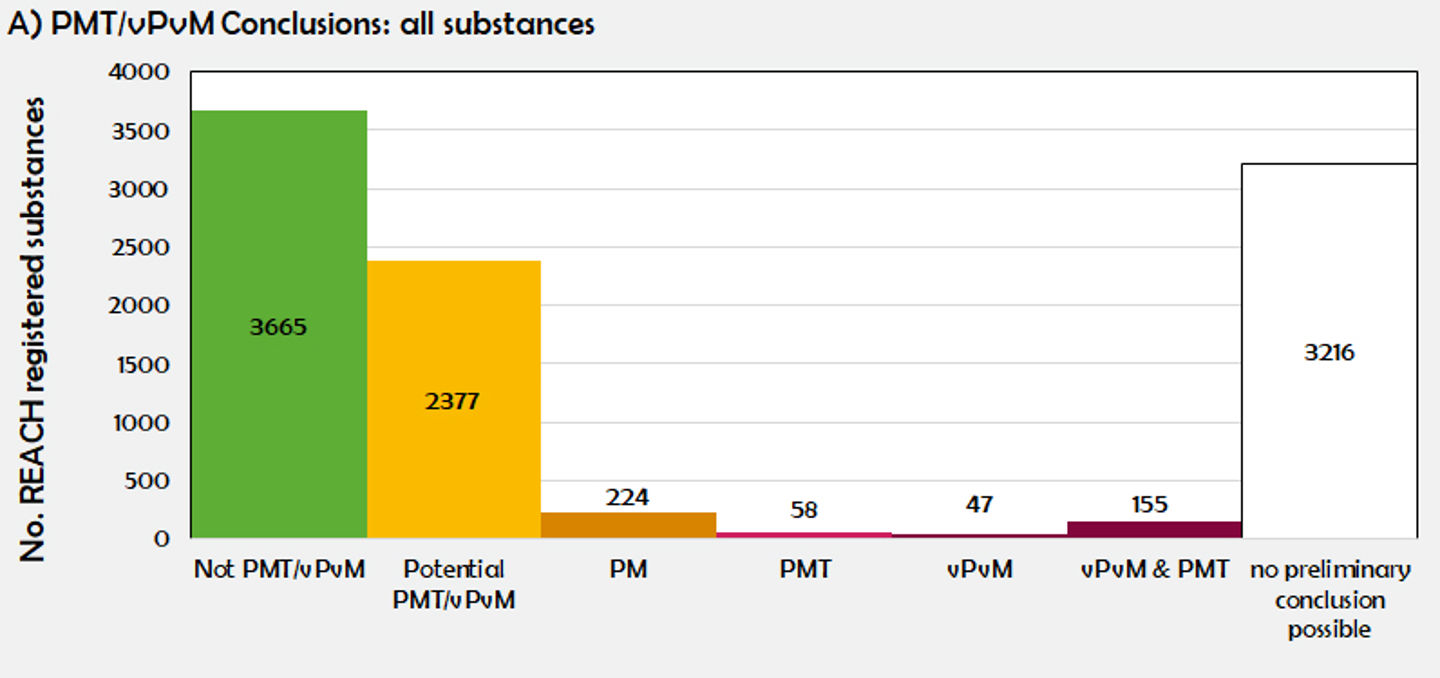 The project developed criteria and an assessment tool to screen REACH registered substances for their PMT properties. They were applied to all REACH registered substances as of May 2017. The ECHA database of REACH registered substances contained 15 469 substances at the time queried, of which organic structures could be identified for 9 742 substances.