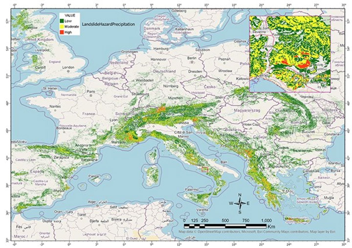 Landslide hazard map Italy