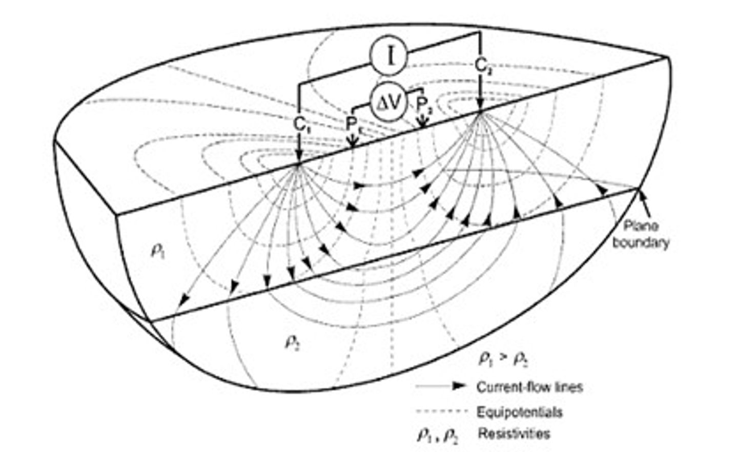 For eksempel har leire svært lav og granitt svært høy motstand. Dette spenningsfeltet blir registrert på overflaten ved hjelp av flere elektroder, og dataene blir brukt til å modellere grunnens spesifikke elektriske motstand, kalt resistivitet.