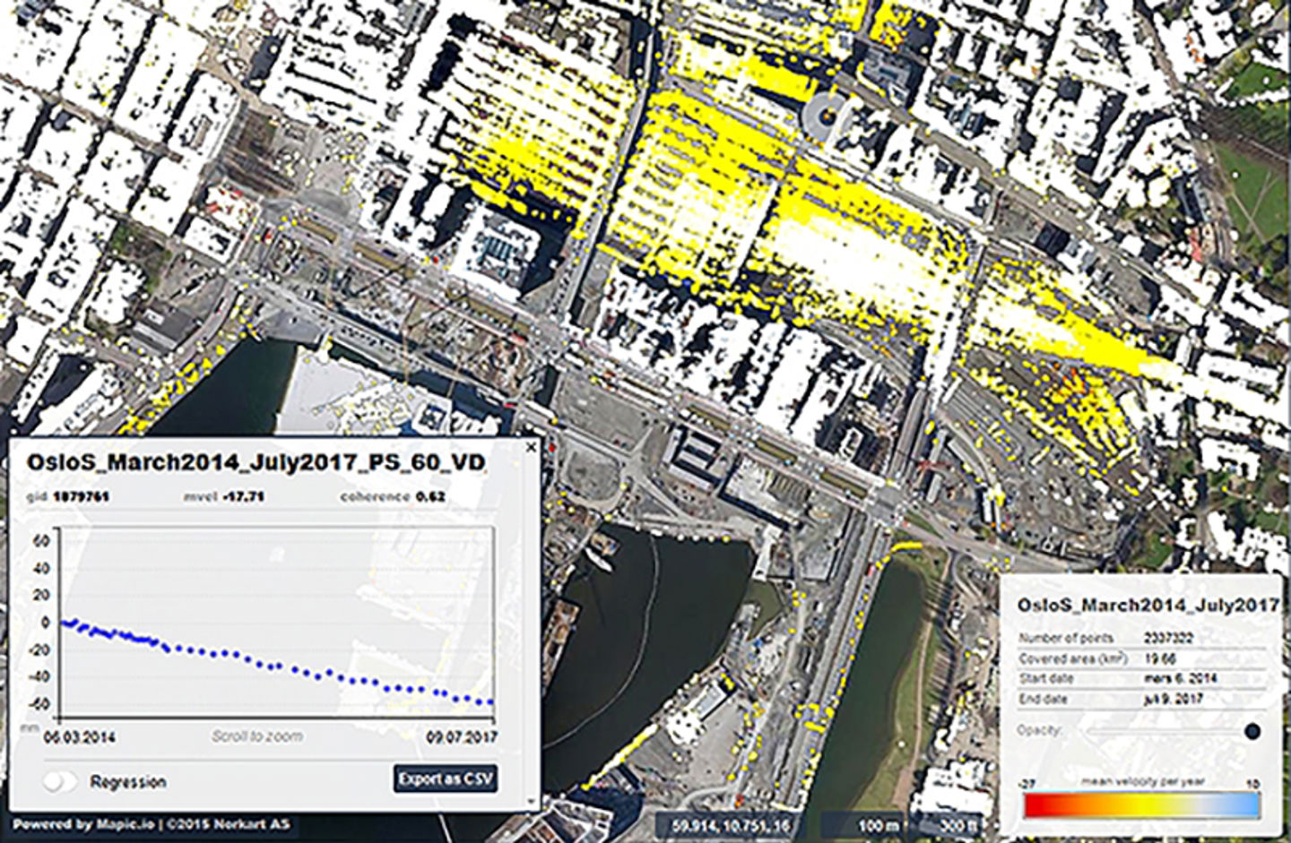 Eksempel fra InSAR-målinger med web-basert innsynsløsning fra Oslo S-området